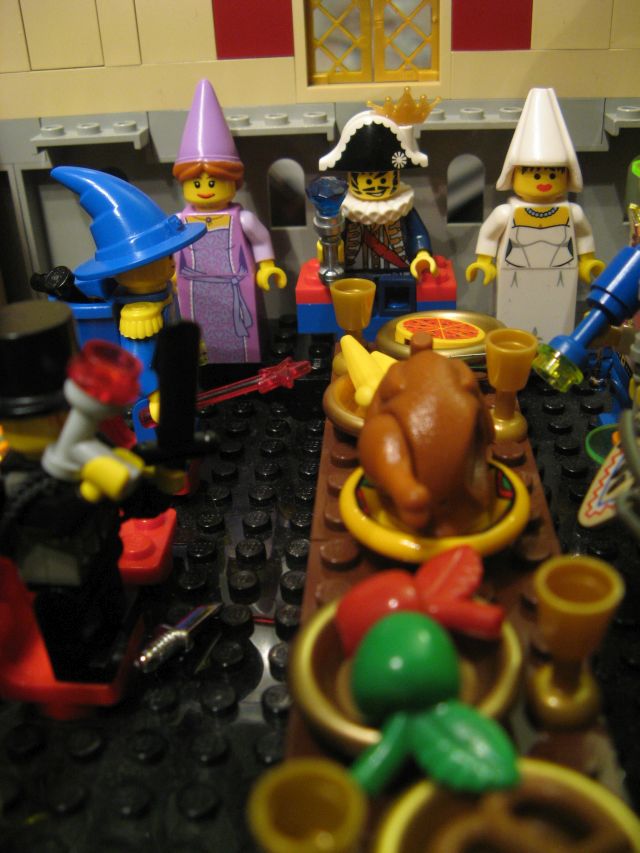 Bei einem weiteren Feschtessen aus der grandiosen scheckischen Küche wurde dem Großherzog und seiner Familie die Entwicklung und der Ausgang unserer Ermittlungen präsentiert. Es lief schließlich darauf hinaus, dass wir den ganzen hochmagischen Kram geklaut haben und der Geheimauftrag-Spross mit uns nach Pseudodänemark zurück fährt.