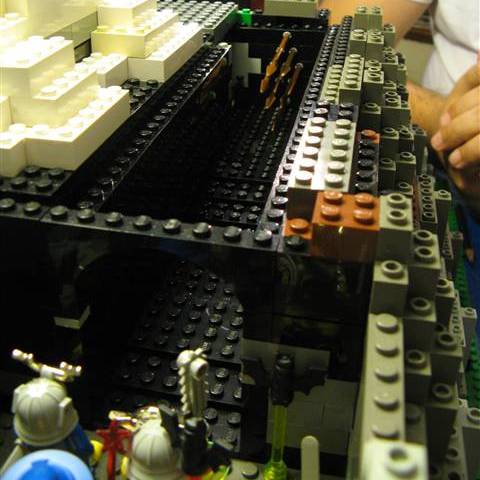 eine Phalanx aus Speeren in die Wand eingelassen.