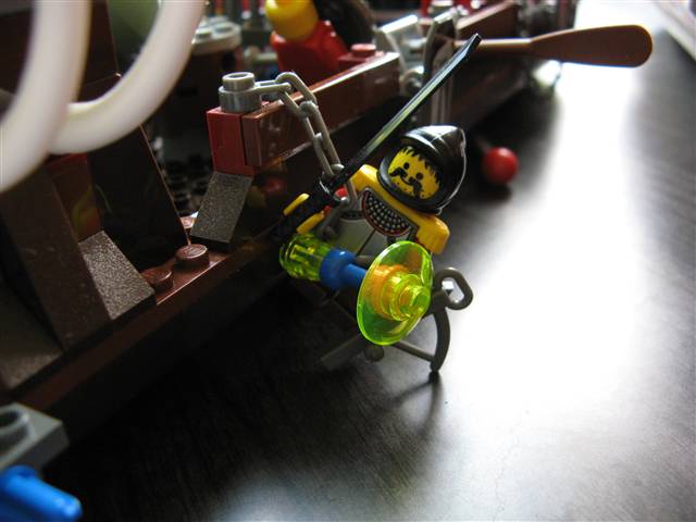 Grmpf hingegen hatte es mit dem "Herüberschwingen" noch nicht ganz so raus. Hier sieht man ihn, wie er sich verzweifelt an der Ankerkette des Piratenschiffes festklammert, um nicht abgetrieben zu werden.