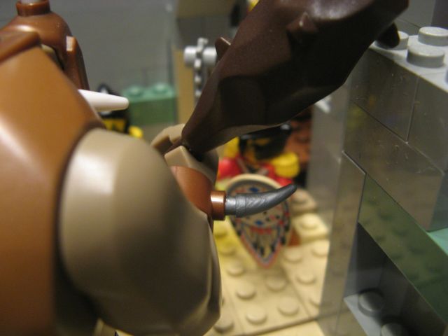 Ein kurzer Versuch einer Verhandlung mit der Bestie wurde schnell verworfen. Hier war die harte Hand der Zwerge gefragt. Mutigst stürzten Breda und ich in die Bresche, die der davonstürmende König hinterlassen hatte. Vermutlich musste er schnell seine Zwitscher-Anhänger auf den neuesten Stand bringen.