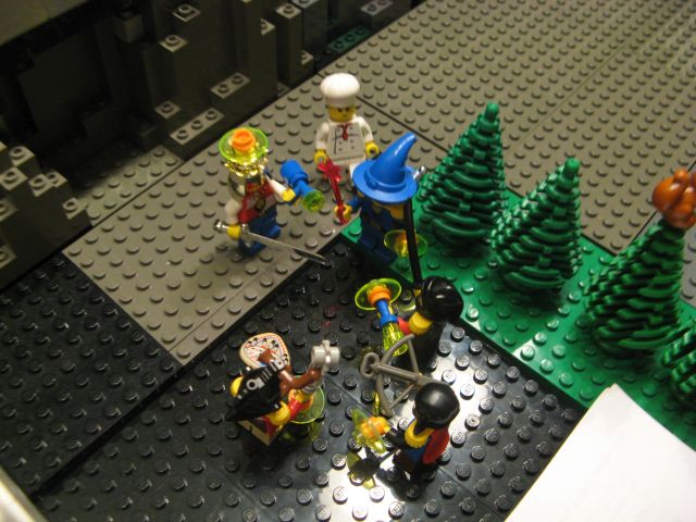 Wir trafen uns also zum Glück alle zur gleichen Zeit vor der Zauberclownschule wieder. Es wurde kurz beratschlagt und dann entschieden, zunächst den Keller der Bäckerei zu untersuchen. Warum ein paar mickrige Skorpione nun auf einmal wichtiger waren als eine Schar schießender Clowns, hab ich nicht verstanden. WILL ICH ABER AUCH GAR NICHT WISSEN! Gut so.