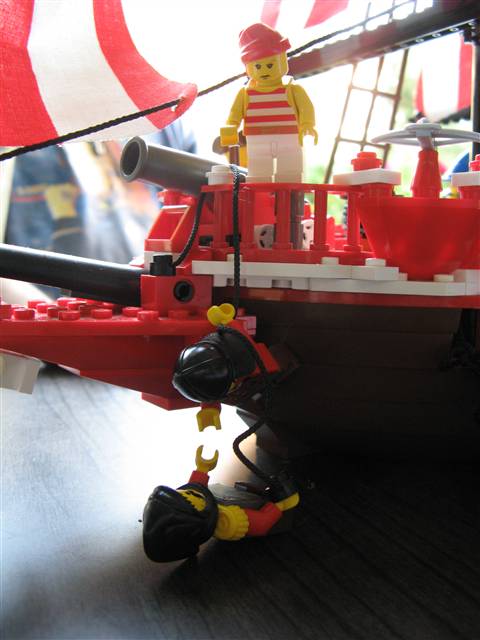 durch eine Leine gesichert, aus dem Wasser fischen.
