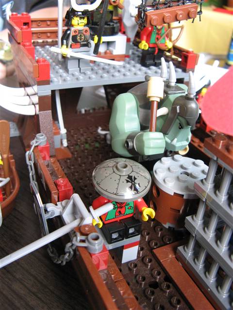Der Kapitän der Piraten hatte einen grimmigen Gesichtsausdruck und einen riesigen Oger als Freund. Während des gesamten Kampfes dröhnten die nipponesischen Kriegstrommeln in unseren armen Ohren!
