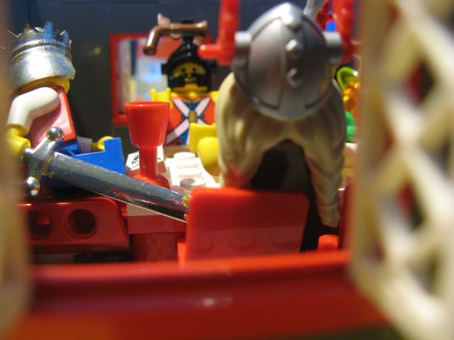 Breda in ihrer neuen Rolle als (Des-)Informationsministerin zu des Königs rechten.