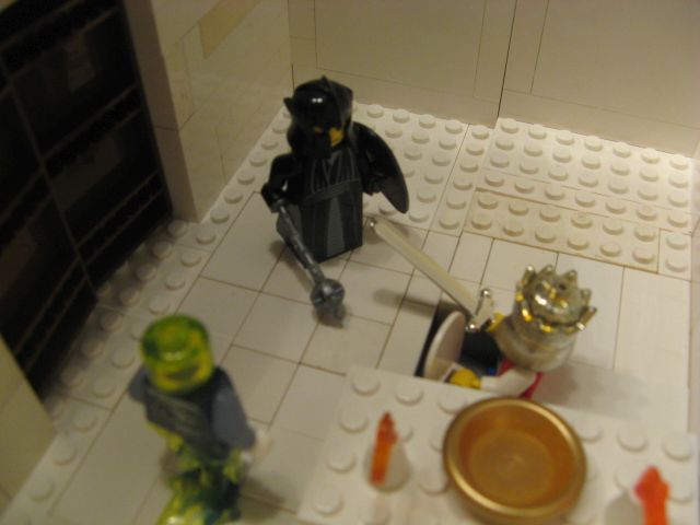 König Åmlæt stüzte sich aus der Luke im Boden und auf den schwarzen Todespriester.